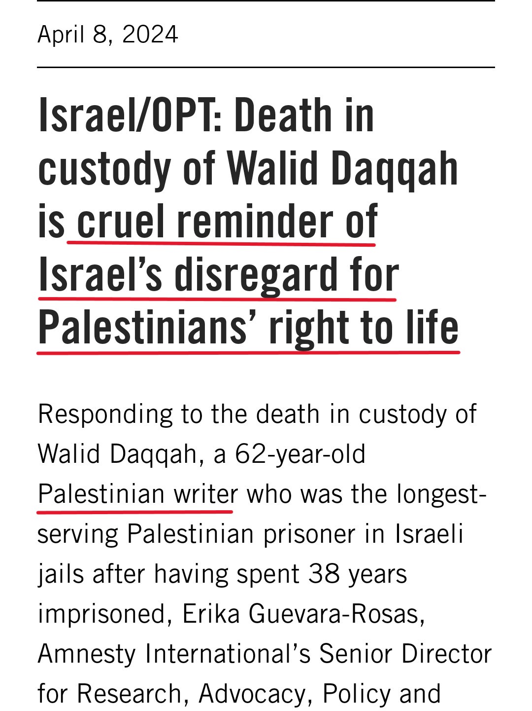 For Amnesty International, this brutal atrocity was not even a footnote, as the anti-Israel organization referred to Daqqa – an Israeli Arab – simply as a “Palestinian writer.” Inverting the entirety of cause-and-effect, Amnesty condemned “Israel’s disregard for Palestinians’ right to life,” rather than an Israeli Arab’s disregard for an Israeli Jew’s right to life.