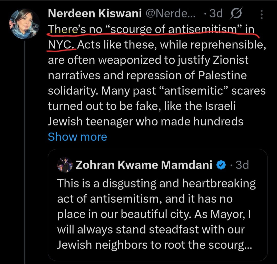 Kiswani, the founder of Within Our Lifetime, just declared that there is “no scourge of antisemitism” in New York, that antisemitism is merely a “political tool.” She dismisses Jewish fear as propaganda, mocking the very notion that attacks on Jews are real or meaningful. It’s malice dressed up as activism.